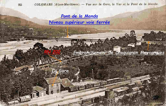 L’emplacement de la gare de la Manda appelée Colomars du nom du village qui faisait partie de la commune d’Aspremont à l’époque et assez éloignée de ce village, a été choisi en collaboration avec les militaires.